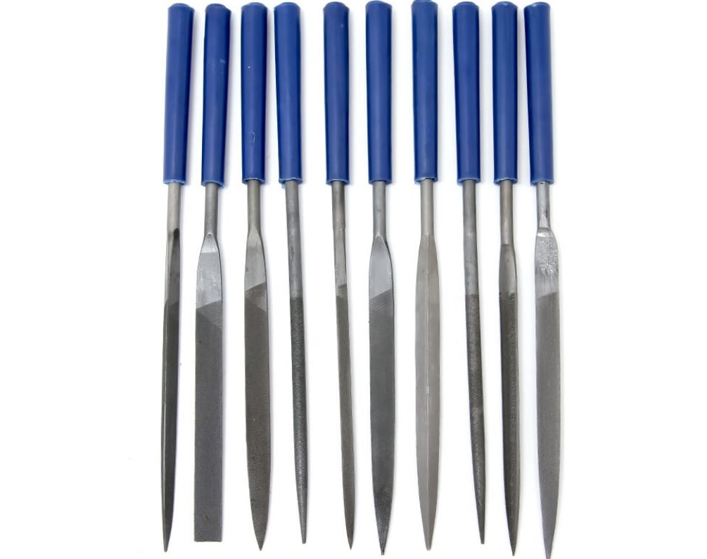Набор надфилей Кобальт 790-090 №1 применяется для точных доводочных работ различных поверхностей. Небольшие размеры позволяют применять их в труднодоступных местах. Обрезиненная рукоятка. В наборе 10 штук. Размер 140*50*3 мм.